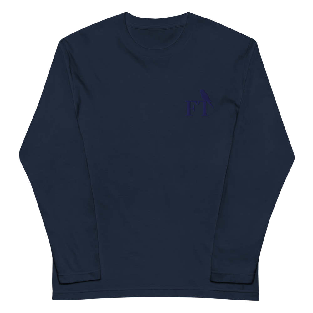 【刺繍】Feather Tales Monogram ユニセックス長袖Tシャツ/セキセイインコ F00133