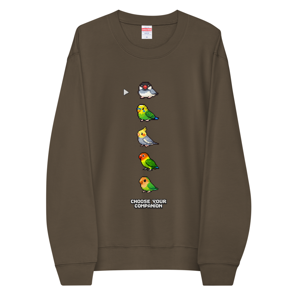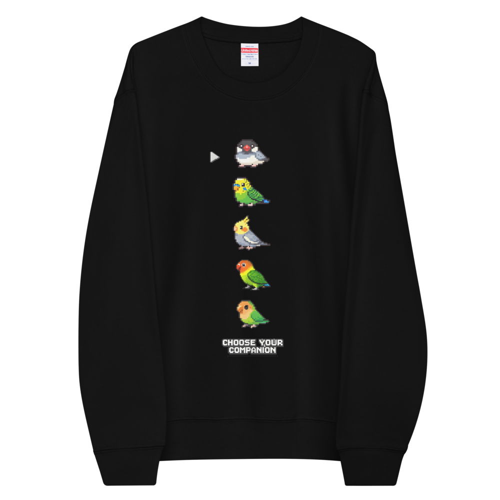 どこか懐かしいピクセル表現で描いた、クルーネックスウェットです。